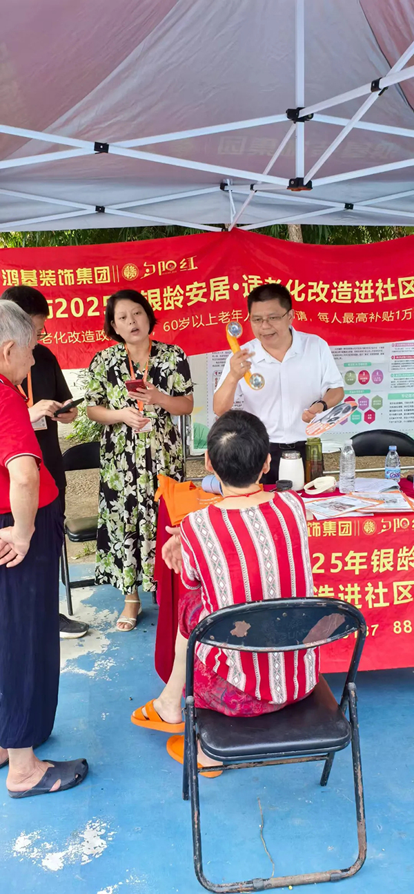 此次活動(dòng)通過(guò)面對(duì)面、零距離的溝通方式,讓更多老年人了解適老化改造的重要性與政策福利,更切實(shí)解決了老年群體及其家庭的實(shí)際困惑,將關(guān)愛(ài)落到實(shí)處。活動(dòng)現(xiàn)場(chǎng),鴻基裝飾集團(tuán)董事長(zhǎng)胡克偉表示:“后續(xù)集團(tuán)還將持續(xù)關(guān)注社區(qū)老年群體需求,憑借專(zhuān)業(yè)的設(shè)計(jì)與施工能力,為符合條件的家庭提供更優(yōu)質(zhì)的適老化改造服務(wù),讓“養(yǎng)老”變“享老”,為老年居民打造安全、便捷的居家環(huán)境”。