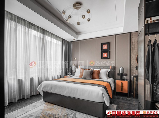 圖5亮點:主臥以溫潤的白色搭配純粹的色,輕奢質感的床品及家居配飾,無不彰顯出時尚優(yōu)雅的空間氣質